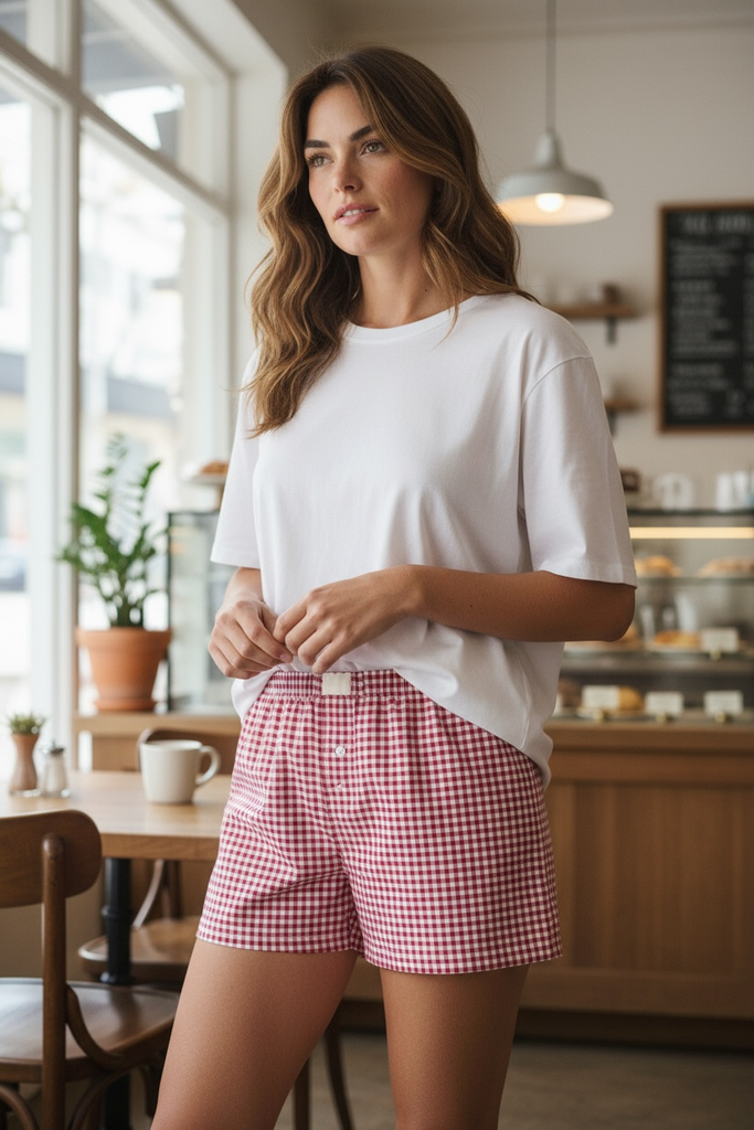 Rock these adorable gingham boxer shorts in cheerful pink and white checks! Perfect for lounging or layering under your favorite outfits, they feature a comfy high-waist design that flatters and feels amazing. The classic gingham pattern brings retro charm to your everyday essentials, while the soft fabric keeps you cozy all day long. Whether you're relaxing at home or showing them off as a cheeky fashion statement, these shorts are your new go-to for fun, comfortable style.
