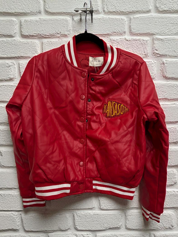 Stay game-day ready with the Kansas City Quilted Bomber Jacket! Featuring a clever snap closure front, this jacket makes layering quick and easy so you can cheer on your team without missing a beat. Its cozy quilted design keeps you warm from kickoff to the final whistle, blending sporty style with comfort perfectly. Whether you're at the stadium or tailgating, this jacket has your back—and your front!