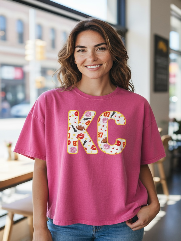 Celebrate your love for Kansas City football with a playful twist! The KC Pink Boxy Crop Tee blends bold team spirit with a fun, trendy style inspired by Taylor Swift and Travis Kelce’s iconic energy. Perfect for game day or casual outings, this comfy crop tee adds a splash of pink and a whole lot of attitude to your fan wardrobe. Show off your team pride and pop culture flair all in one!